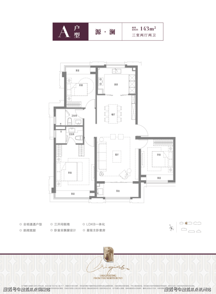 空间尺度拉满的同时,更做到了全明通透,三开间朝南的布局不仅方正,更最大程度满足了室内通风采光的需求!配合LDKB的餐厨一体化设计和全卧飘窗、主卧套房配置,更令本就开阔的居住空间在功能性上同样做到极致!