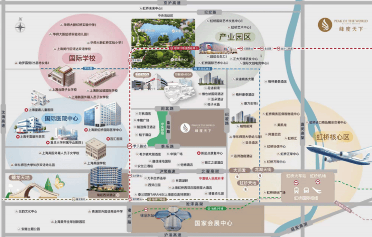 5 分钟驶入高架,15 分钟达大虹桥核心区,20 分钟到普陀、长宁,30 分钟可达人民广场、静安寺;