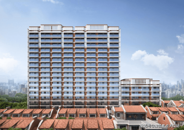 当然,项目的高层也是风景的一部分。 外立面曲面弧形的设计灵感取自武康大楼,经典三段式黄金比例的运用,以及古典主义竖向挺拔线条的勾勒,呈现了一道标志性的城市天际线!