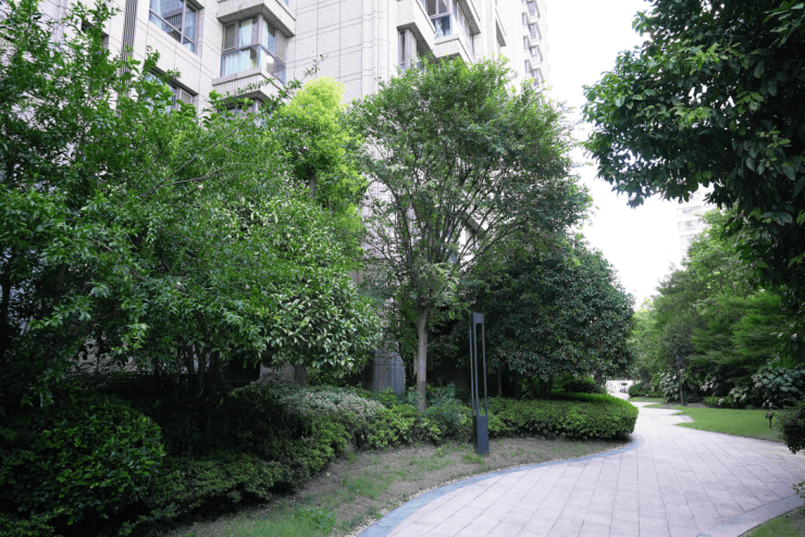 小区绿化做得也十分用心,以层叠错落的暗色系植物品种进行混栽,带来非凡的高端住区体验。