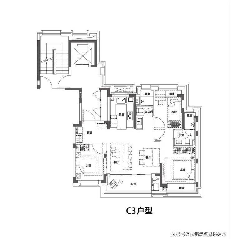 全卧瞰景飘窗设计+“独立”电梯厅,实用面积非常高!
