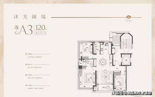 功能优势:动静分区合理,主卧套房设计,私密性较好。适合改善型家庭,兼顾实用与舒适。