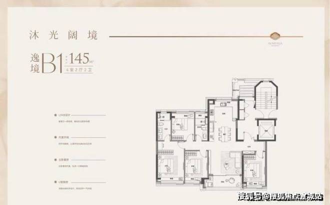 户型特点:4开间朝南,LDK一体化设计,南北通透。客厅面宽达4.3米,外接4.8米长阳台,采光通风俱佳。主卧带270°转角飘窗,主卫也有飘窗赠送。全屋飘窗设计,独立电梯厅,私密性与尊享感强。