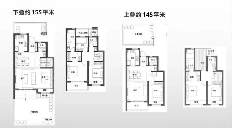 建面约145–155㎡叠加别墅,总价约930万–1102万起