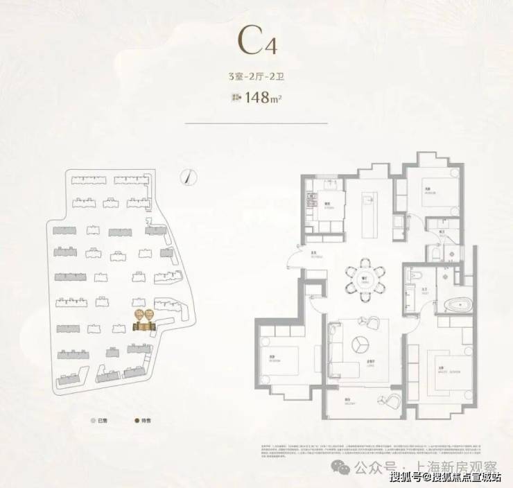 项目一期房型均呈现大开间、短进深的特点,主力房型为131㎡3房,占到一期总量的70%,其余房型为100㎡2房,155㎡3房,175㎡4房。项目一期于2022年11月入市,推出621套房源(C区),总认购1400+组,认购率225%,入围分55.28,开盘售罄!