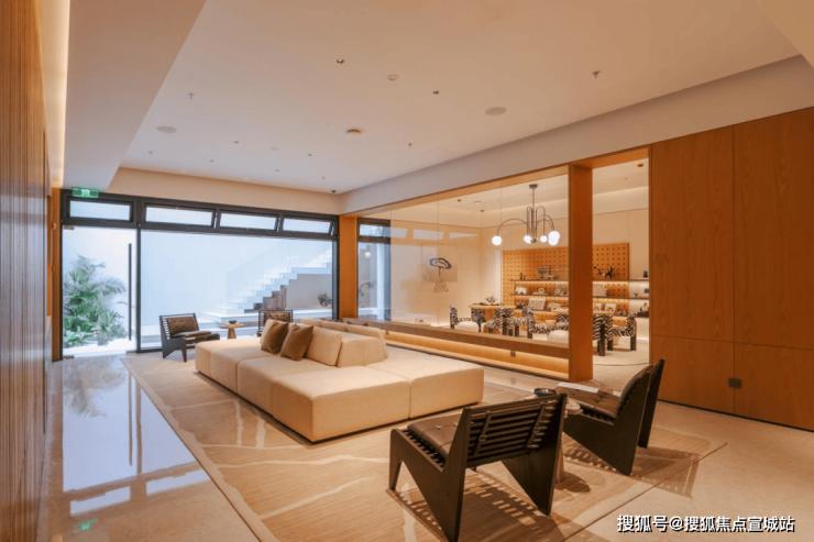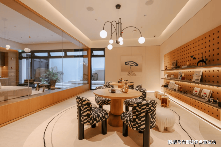 再看目前呈现的C区组团会所,木色风格和考究光线的运用让空间感非常强,搭配外部下沉式小广场的绿植阳光等,形成了通透考究的第二会客厅。而从内部布局来看,极具艺术感的装饰提升了整体的档次,友邻交流、亲子阅读、对话品茗、健身运动等需求随时满足,生活氛围浓郁。