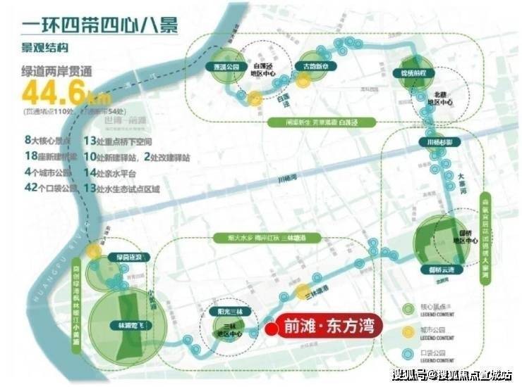 世博水环将与黄浦江滨江步道形成“滨水+滨江”的空间闭环,构建“一环四心四带八景”景观结构,构建集生态、文化、民生于一体的城市滨水生活圈。