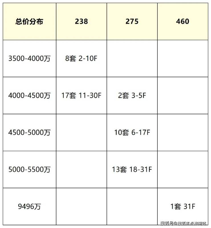 总价方面,3500-4000万的房源有8套,4000-5000万的房源足足有29套,4000万级预算买家上车的概率非常高!