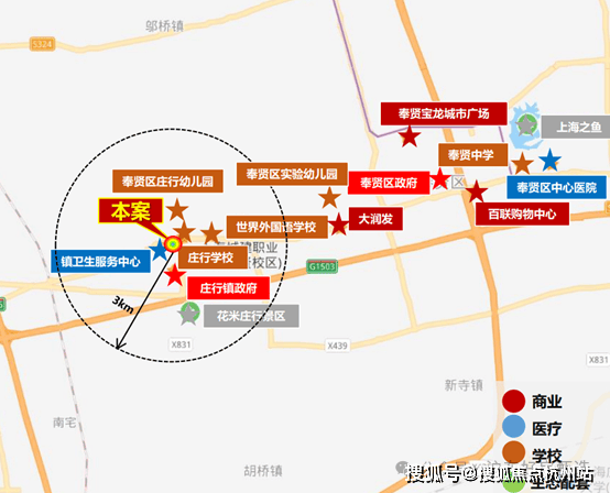 医疗配套:庄行社区卫生院、奉贤中医医院、古华医院、奉浦医院、上海交通大学附属第六人民医院南院、新华医院(在建,位于奉浦大道地铁站)。