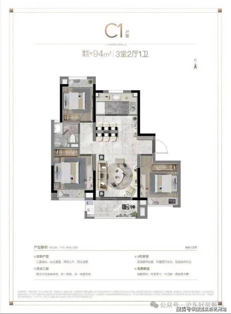 建筑面积:约94-130平(三房/四房)
