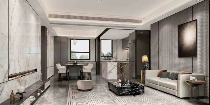 项目打造三重归家礼序,约 54 米殿堂级门扉,仰首超 300㎡星空顶;奉贤首座"中央车站",对标奢华酒店落客区;酒店式单元入户门庭,奢石搭配铝板,空间气场全开。