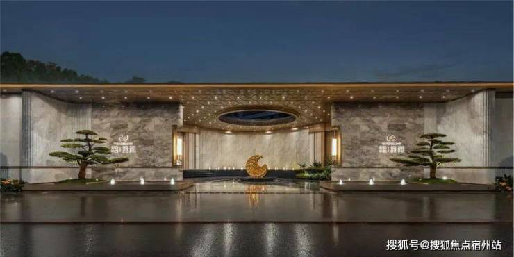 以星级精奢酒店门庭为美学蓝本,匠造约50米超长气质门庭,大尺度平顶屋檐,对称式布局,营造高端住区的庄严; 卡慕白奢石 景墙与罗汉松相映成韵,令尊崇在无声处彰显。