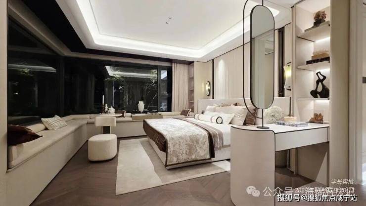 南向面宽10米,侧向总面宽14.1米。两个转角飘卧室。双阳台,其他房间全飘窗赠送。除了西边,另外三面几乎全是窗。看中庭景观,不到约140㎡的户型竟然能配浴缸!