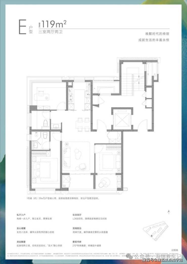 建面约119㎡三房户型: