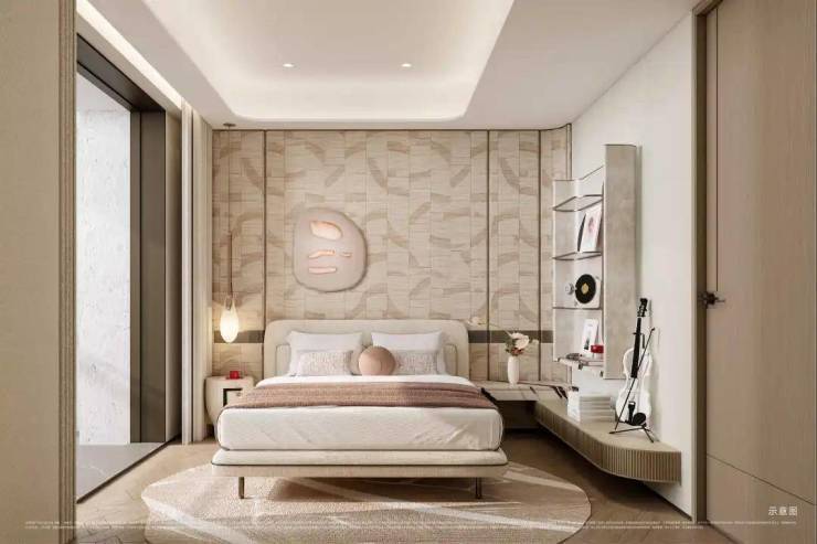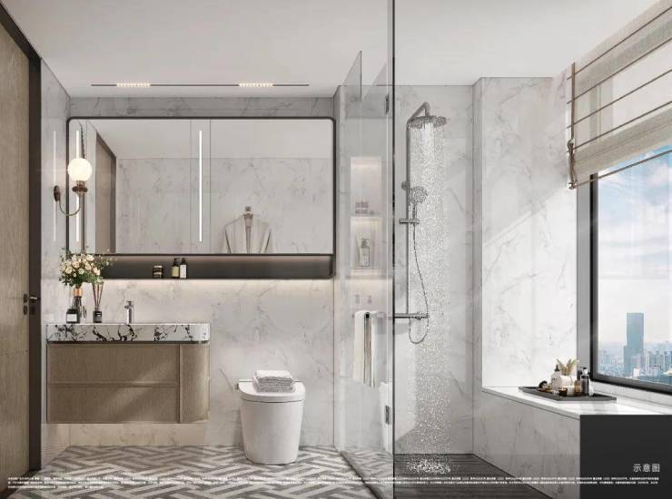 主卧套房尤其吸睛!以270°转角飘窗打破传统空间边界,配合双台盆、大尺度衣帽间等顶配细节,将奢华居住体验浓缩于每一寸空间。飘窗台延伸出的休憩区与窗外景观形成对话,让私密时光也充满诗意。