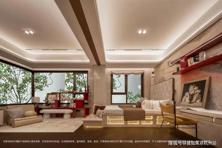 吊顶微弧度设计,在心理上营造出被温柔环抱的安全感,飘窗也可以灵活改造多种功能。