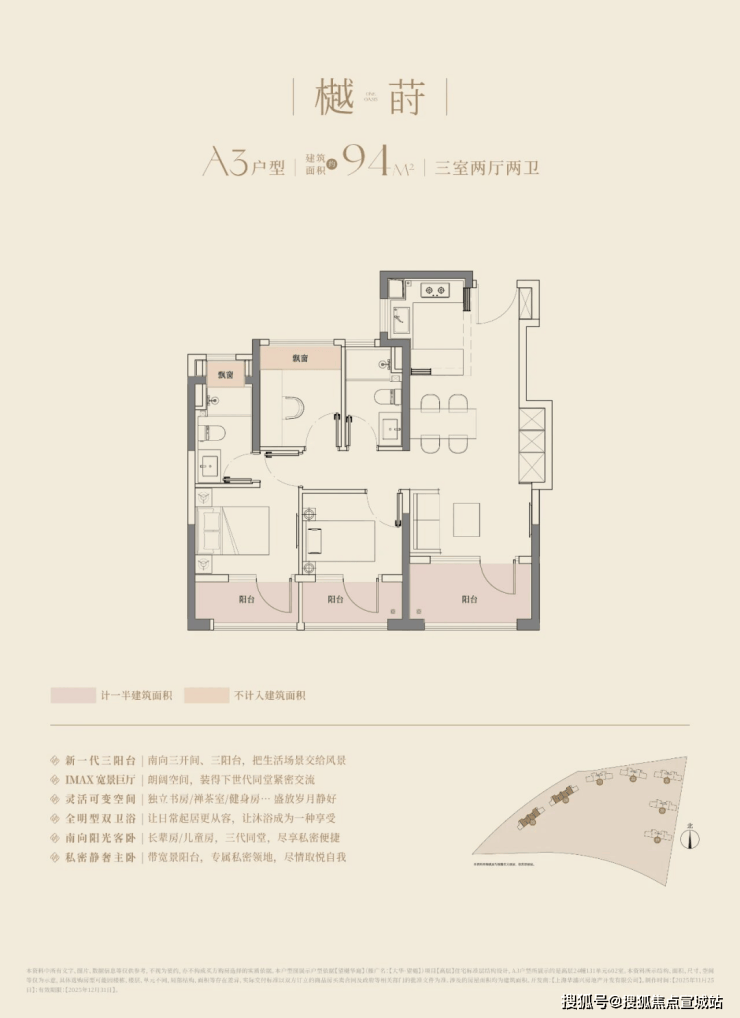 在这里,高层建面约94㎡户型做到了惊人的三阳台,对比同板块内以前的标杆小区,同面积段户型只做了1个阳台。不仅数量发生质的变化,实得面积也大大增加。