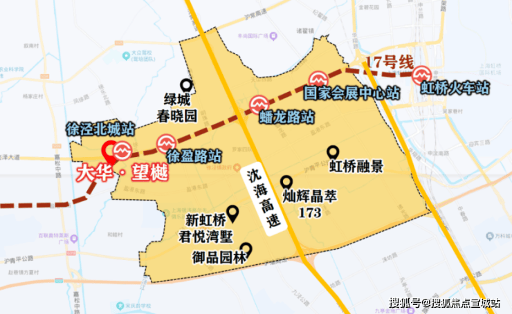 徐泾北城站1站可达徐盈路天空万科广场,2站至蟠龙古镇商业区,3站直达国家会展中心,——形成“三站联动”的生活闭环。