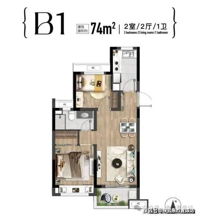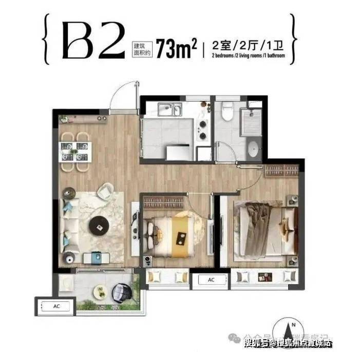 在产品类型方面,云湾4幢高层均为建面约73-74㎡高层2房,一起来看:
