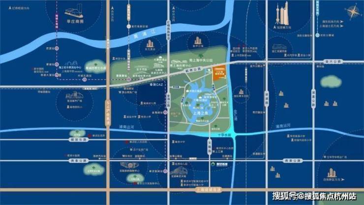 项目位于奉贤新城生态核心区,拥有2.53平方公里上海之鱼得天独厚的生态禀赋资源,北侧紧邻城市绿肺——4.78平方公里的中央公园,可谓“楼在林中、人在景中”。