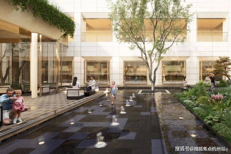 下沉式庭院约2200㎡立体景观聚场,庭院与地面绿意交叠;既是社交沙龙的艺术剧场,亦是独坐观云的沉思之境;
