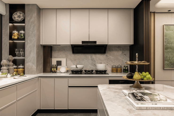 以厨房为例,配备博世燃气灶、油烟机、洗碗机三件套,搭配摩恩水槽与抽拉式水龙头,兼顾实用性与品质感;值得一提,colmo内嵌式冰箱也纳入交付范围,无需业主额外投入,一步到位享受高端厨房体验。
