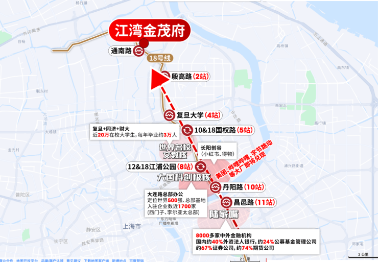 另一方面18号线更串联起“世界文教核-大国科创极核-全球金融极核”,复旦、财大、同济,大连路总部集群、杨浦滨江大厂、陆家嘴金融圈均分布在这条线路上。