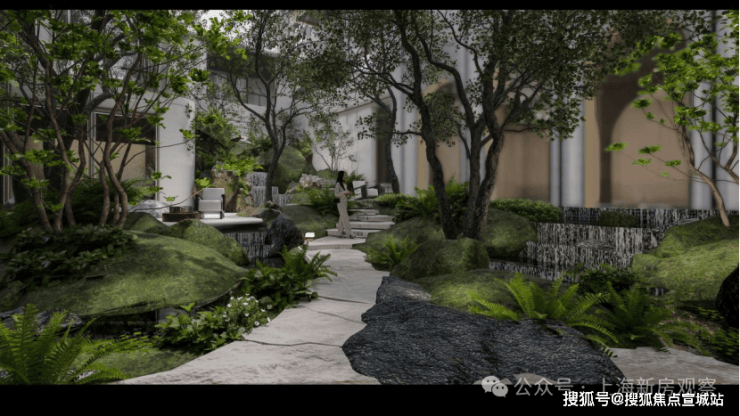 这一理念在社区内部得到了极致延展。约300米U型沉浸式景观园林不再是绿化点缀,而是一片可步入的生态画卷;与之深度融合的约1600㎡下沉式会所,则扮演着“社区活力引擎”的角色。