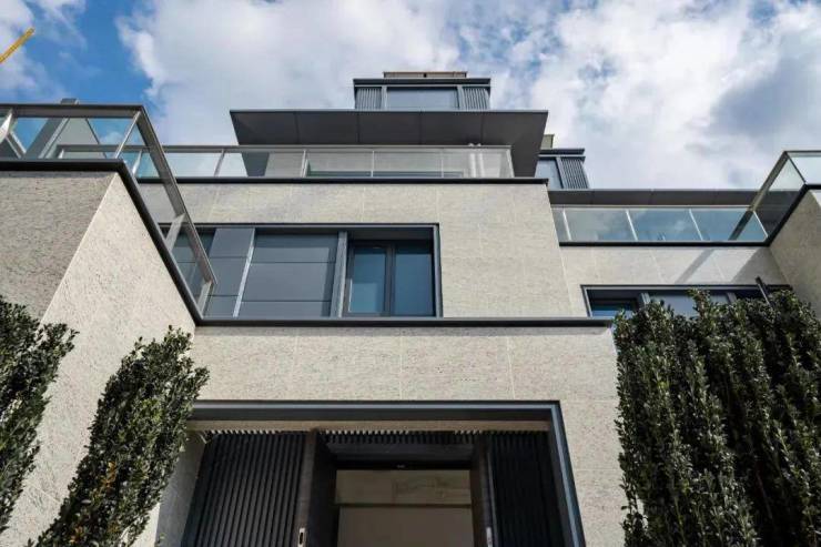 联排别墅为新亚洲风格,外立面结合了石材、铝板和玻璃幕墙,简约大气、历久弥新的同时,也让起居空间保证了充足的透光率!