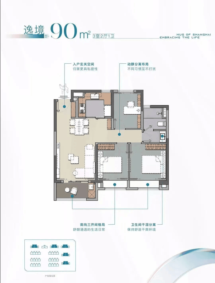 整个区域以九宫格的布局展开,涵盖了住宅+商业+教育配套,项目继承经典海派的建筑风格,通过外立面层次的打造和立面细节的打磨,使得小区外观更有现代感。