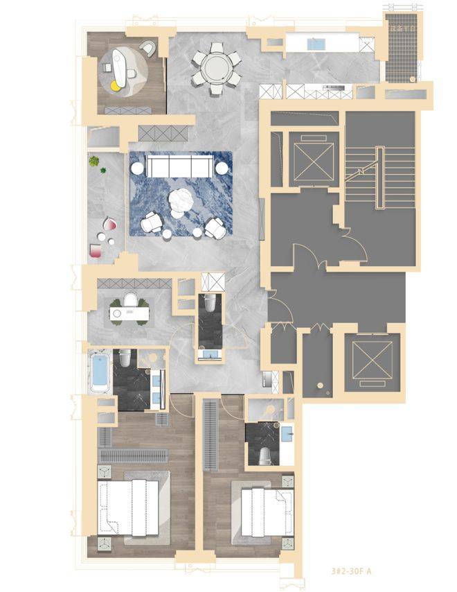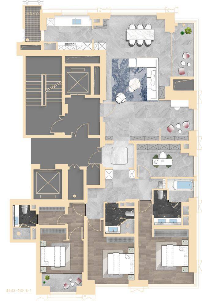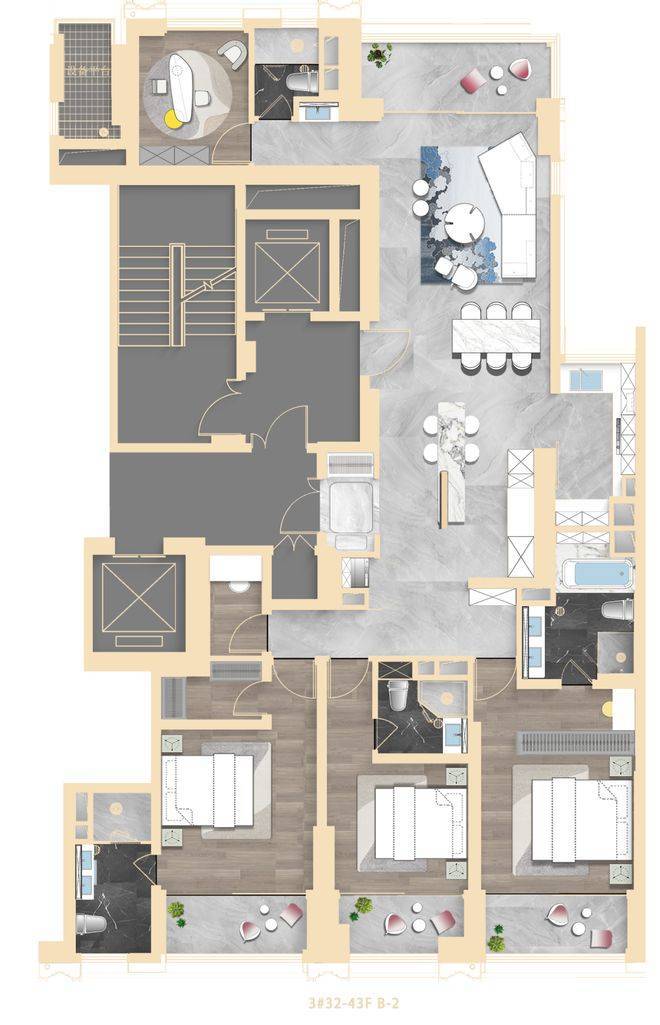 建面约193㎡,237㎡为类一梯一户设计!拥独立门厅,建面约302㎡标配两梯一户,排面和仪式感全部Allin!