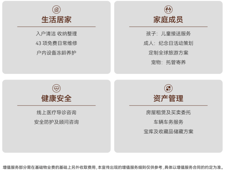 除了无边际基础服务之外,古北99还为业主增设了私属增值服务,包含儿童接送服务、入户保洁、43项免费日常维修、宠物托管、私人定制全球旅游方案、车辆养护代检等!
