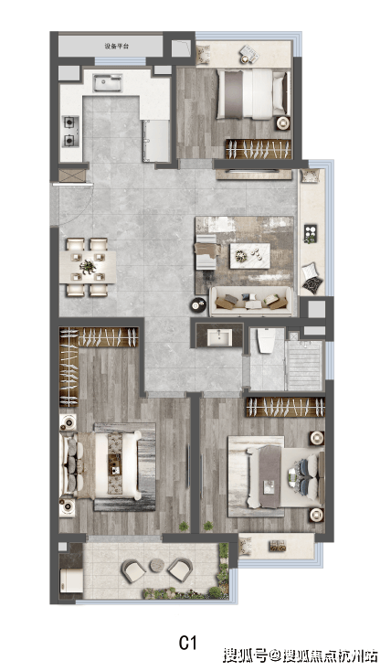 133㎡四房两卫:双套房 + 独立家政间,大尺度空间,改善一步到位