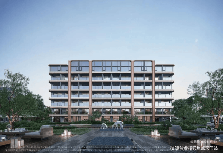 外立面,溯源海派经典的 ART DECO 风骨,采用经典的 三段式结构, 整体布局讲究对称和秩序,横竖线条交织,体现出简约工整的现代美感。
