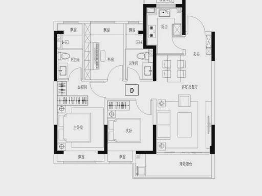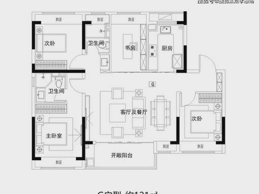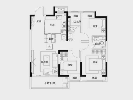 双明卫、客餐厅连阳台、动静分区,三口之家 / 二孩家庭适配