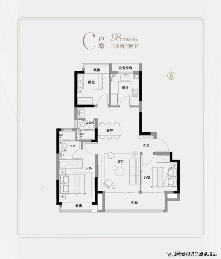 高层建面约98㎡3房2厅2卫