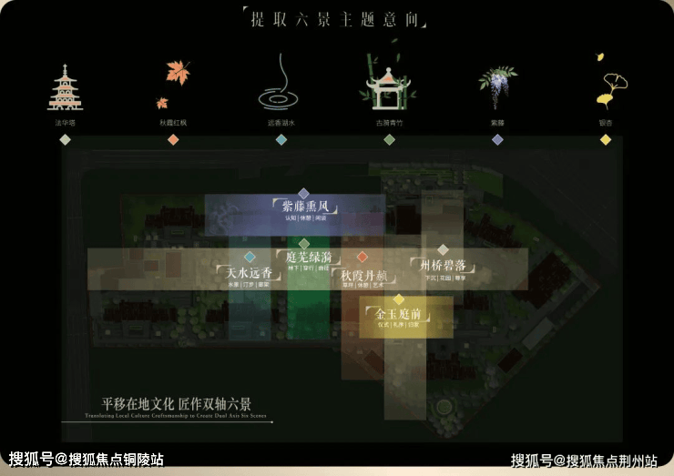 项目园林对轴线的运用同样出彩,堪称神来之笔的“双轴六境”,由“礼序归家轴+景观漫步轴”纵横交织,融在地文化,以“非遗”竹编形制,铺陈园林步道,同步淬取“州桥壁落”、“紫藤熏风”、“天水远香”等嘉定古今6景,提炼细节元素及专属色系,营造主题园林空间。