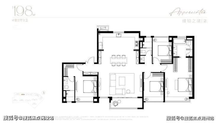 终极改善的顶奢4房!极端宽奢的南北通透户型飞机户型,你能想象到的美好都能在这个户型中体验到。