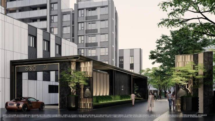 为了营造归家的仪式感,越秀·杨浦天玥打造了 宽约35米、高约5.1米酒店式奢阔门头,引入了价值不斐的名贵黑松。