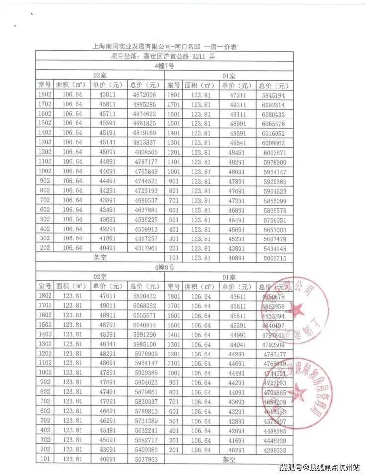 前期一房一价表▼