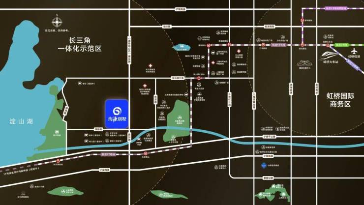 顶配配套:毗邻淀山湖(62 平方公里水域)、朱家角古镇,近 17 号线朱家角站,3 公里内覆盖万达茂、兰生复旦分校、中山医院青浦分院。