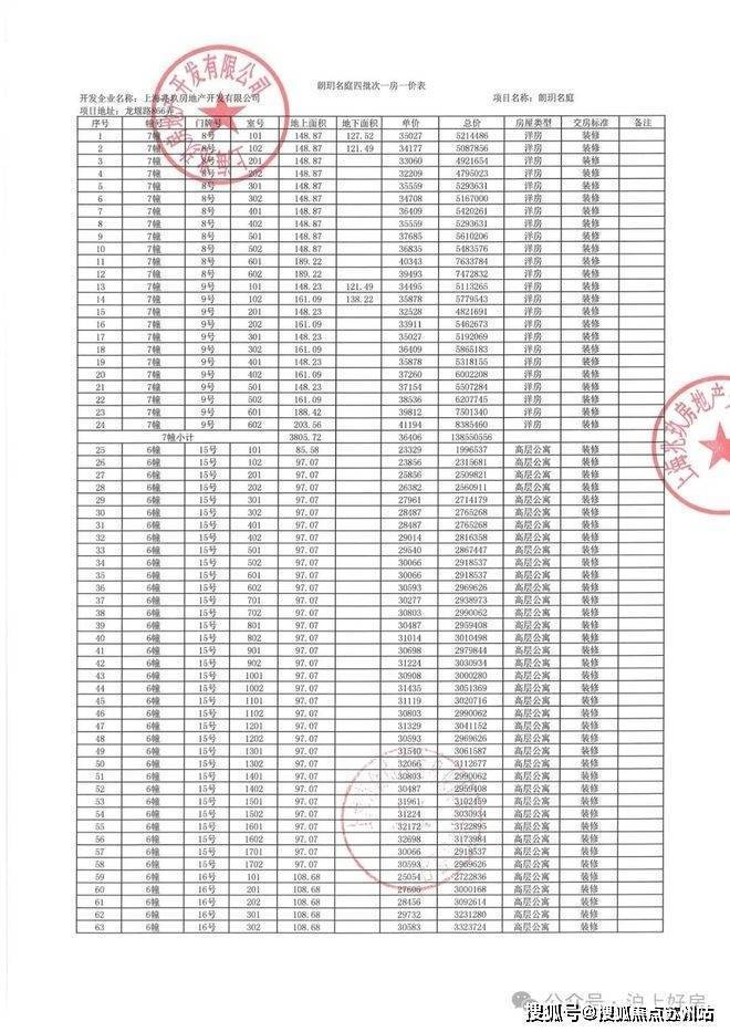 项目一房一价表
