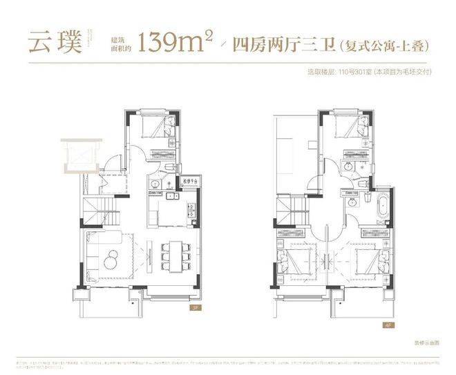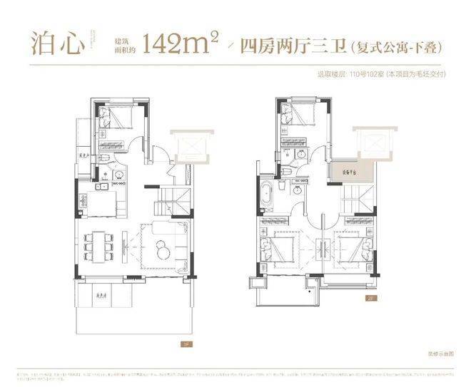 项目叠墅户型有建面约142㎡下叠,建面约139㎡上叠。