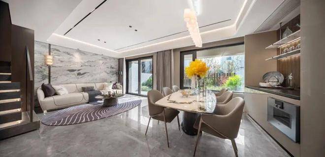 一层是会客区,大平墅的空间感,大横厅设计,客餐厅相对独立,将生活的奢度打开!
