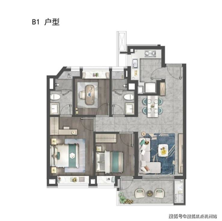 建筑方面,虹桥嘉悦府汲取高级灰经典美学灵感,以珍珠蓝石材、多彩仿石漆、深灰色铝板搭配宽幕玻璃,整体呈现玻璃流幕现代立面,经典永不过时。