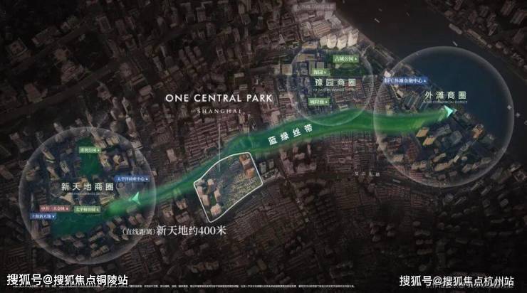 距离新天地直线距离约400米,作为蓝绿丝带规划上的关键节点,随着大新天地东进南拓战略逐步实施,通过水景、绿地和公共空间,串联新天地、豫园、外滩三大世界级商业版图。