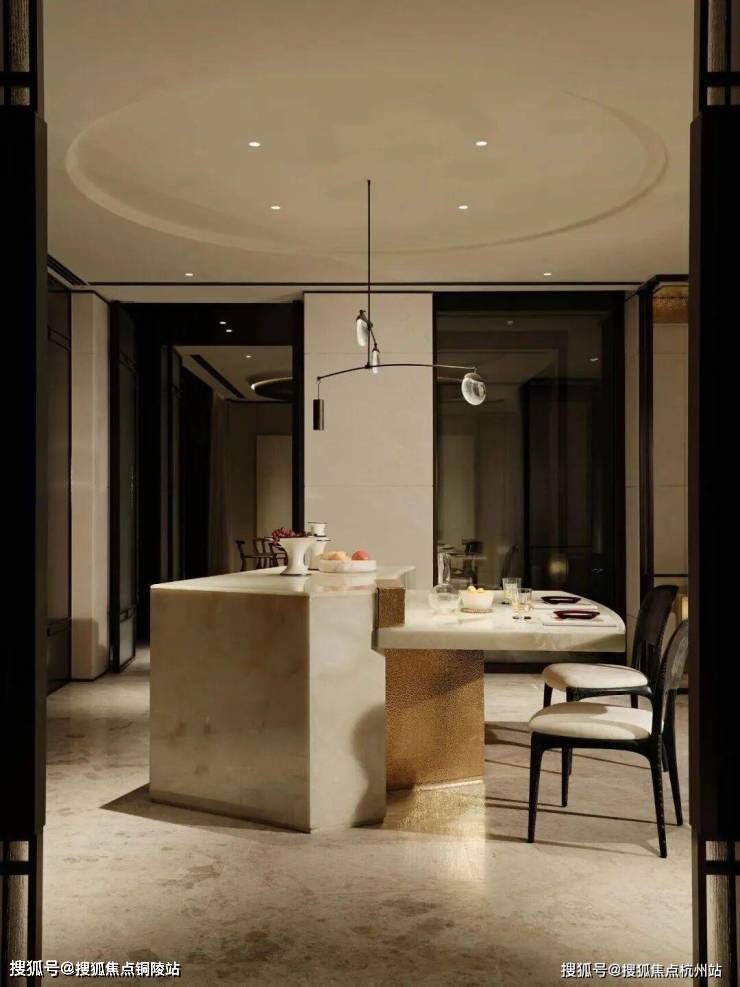 契合中国传统院落居住哲学理念,以“外紧内松”空间设计手法,对风貌别墅空间尺度进行当代拓新,让空间服务于生活。外紧-通过外部百年巷道肌理活化、建筑错落排布景筑交融,打造美而精的体验;内松-宅院内以多重庭院、立体花园、大落地窗等实现室内尺度拓新,给家人更多停留空间、打造建筑会呼吸的松弛感。