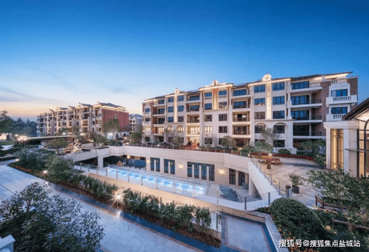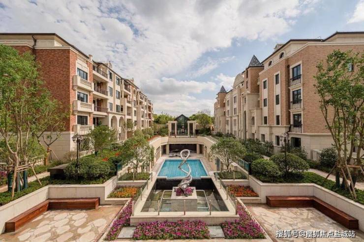 社区建筑采用欧式设计风格,外立面均为文化砖及黄金麻干挂石材打造,配备涉外别墅级草坪活动广场、下沉式露天泳池、喷泉广场,高成本打造精致又舒适的社区环境。景观则采用横纵对称设计,拥有完善的河岸景观及滨水步道。