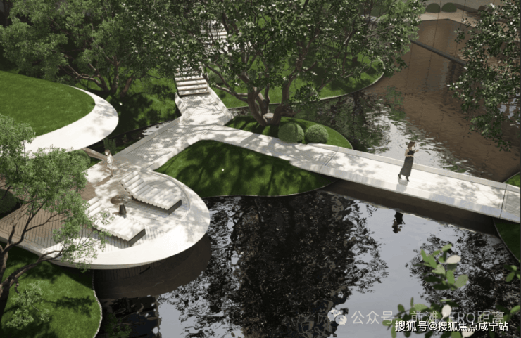澐启滨江的庄园景观彻底打破行业内景观节点堆砌的通病。项目以杰弗里·巴瓦“雕琢过的荒野”为灵感,打造约3万方全地貌园林,约110米超长绿荫串联派对草坪、雅憩花园、方舟秘境等场景,形成层层递进的立体景观,实现了从“造园”到“造生态”的行业升级。