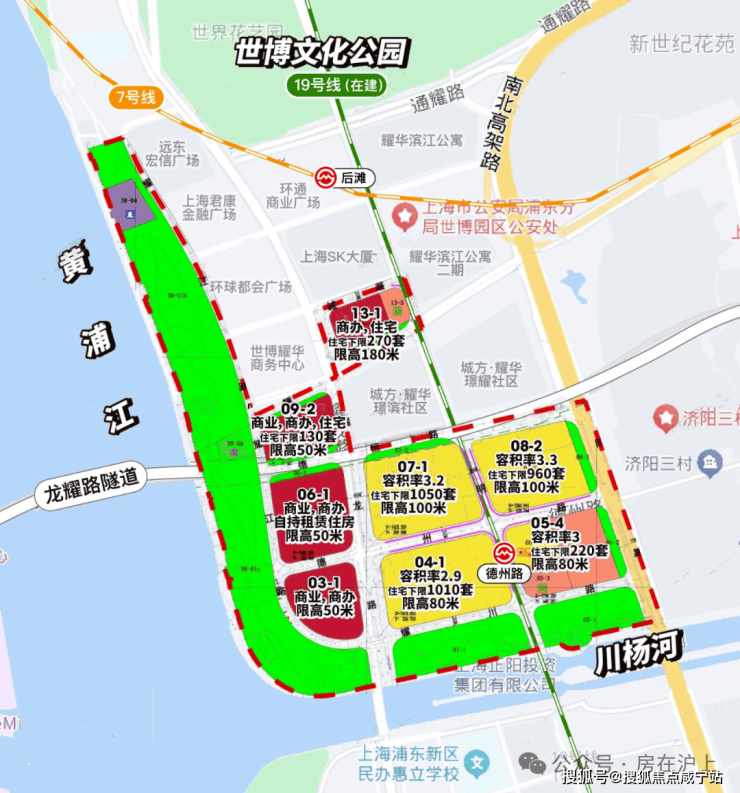 位于内中环,被划入了中央活动区CAZ,也是稀缺的可成片开发的区域。7号线后滩站可以串联徐汇滨江、静安寺等核心商圈,19号线也在九宫格内设站德州路站。
